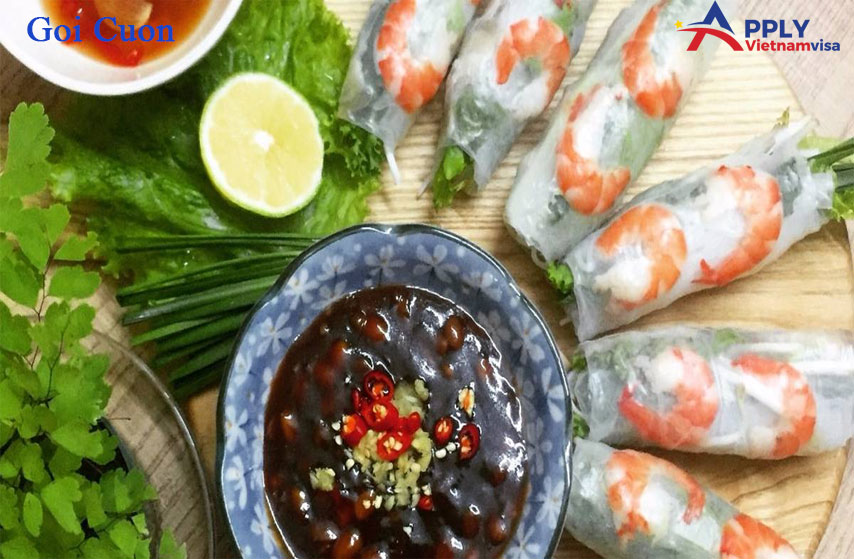 This dish is scrolled with vermicelli noodles, pork slices, shrimp, lettuce or basil. Then it is dipped into ground chili sauce or fermented fish sauce depending on each restaurant. This dish is quite popular in Vietnam and it is a favorite food for all people.