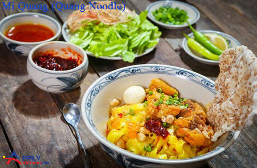 Mi Quang is a special food of Quang Nam Province in particular and Vietnam in general. This dish is combined from noodle, river shrimp, boiled quail eggs and roast pork. Besides, it is also added a variety of herb such as peanuts, basil, lettuce, slices of banana flower,... Priced between VND 25,000 - VND 35,000.
