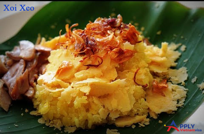 This is a Vietnamese snack in Vietnam and suitable for breakfast. This dish includes sticky rice, onions, soy sauce, boiled chicken, Vietnamese ham,.. The cost for this dish is from VND 15,000 a bowl. At some restaurants, they can add some other ingredients to make a special flavor for their restaurants.