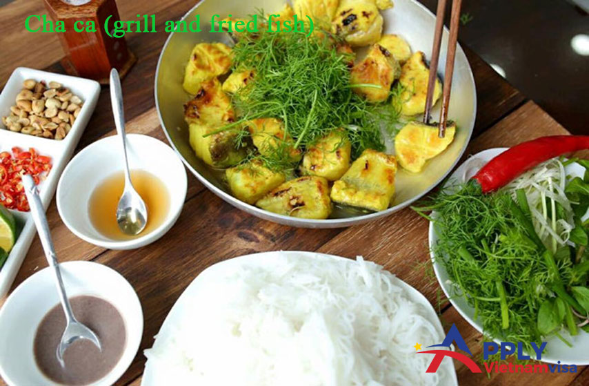 Cha ca is a popular food in Vietnam due to the water region, there are so many fishes in the river and sea as well. Therefore people discovered the new way to process their fishes by grilling and frying. This dish is Cha Ca or Grilled and fried fish. It is a delicious dish in Vietnam, can be mixed with noodles or other foods.