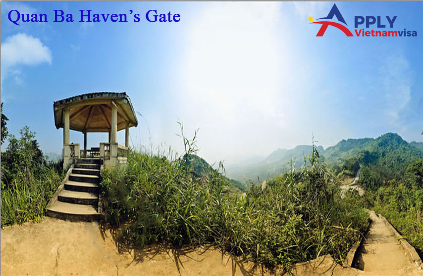 Located about 50 km in the North of Ha Giang town and this is the gate of the geological park. Behind this gate are the locations of H'mong for 4 districts: Quan Ba, Dong Van, Meo Vac, and Yen Minh. There is a huge wooden door built by French in 1939 with 150 cm thick to divide this area from the other part. Nowadays, this door is no longer there, just the sign in both Vietnamese and English languages: Quan Ba haven's gate (Cổng trời Quản Bạ).